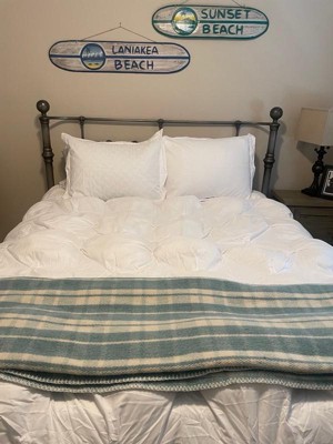 [This review was collected as part of a promotion.] Sooo cozy. This blanket is perfect because it’s oversized and gives the aesthetic appeal of a fluffy comforter, but it is extremely lightweight and does not get too hot at night. I would recommend this if you’re looking for something that fits that criteria, you can always layer with a quilt if you need more warmth. I’ll also say that a duvet cover looks very nice on this if the squares aren’t your style.