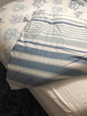 [This review was collected as part of a promotion.] My wife loves this duvet set. The coastal blue and white stripe design matches our decor perfect. It feels soft to the touch washed well in the wash and it holding up nicely. The bottom closure on the bottom is secure and it stayed on the duvet well. Great product.