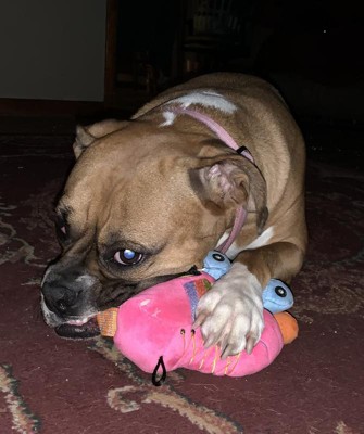 [This review was collected as part of a promotion.] This is just the cutest dog toy..really is made TOUGH and my dog which is a Boxer actually enjoys this toy..she has played & chewed on this toy now for over an hour and hasn’t stopped! Would definitely recommend if you have a chewer like my dog.. and who is rough on toys like mine!