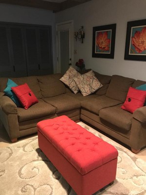This is a beautiful addition to my living room with added space inside for storage and seating. Perfect size!