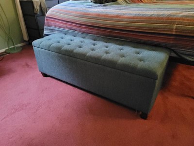 I love this bench. It is well padded and is very sturdy. Very easy to screw the legs in. Would highly recommend purchasing this bench. Love the storage also.