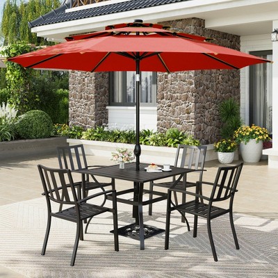 Tulip 5pc Outdoor Dining Set - Red - Crosley: Vintage Style, Scalloped Chairs, Powder-Coated Steel, Weather-Resistant