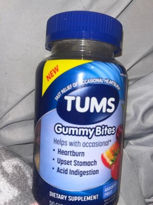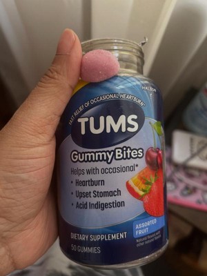 - Contents: 50 Count TUMS Gummy Bites Dietary Supplement - Assorted Fruit Flavors