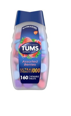 Soothe heartburn fast with TUMS Ultra Strength Antacid Tablets in Assorted Berries flavor. Each tablet delivers powerful relief from acid indigestion, sour stomach, and heartburn by neutralizing excess stomach acid on contact. Formulated with calcium carbonate, TUMS also provides an extra source of calcium for strong bones and teeth. With a variety of berry flavors, these chewable tablets taste great and work fast, making them a convenient solution for on-the-go heartburn relief. Trusted by generations, TUMS Ultra Strength is the go-to antacid for powerful, fast-acting comfort.