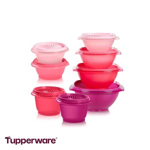 - Set of sixteen various-sized bowls with the classic Tupperware® sunburst lid design