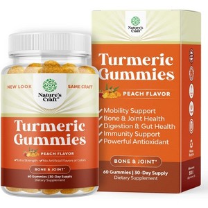 Turmeric Curcumin Gummies, Immune Booster Turmeric Gummies for Joint Support and Advanced Skin Care, Peach Flavor, Nature's Craft, 60ct