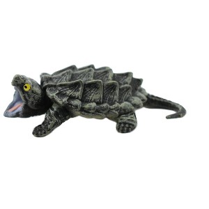 Alligator snapping turtles are sometimes described as dinosaur-like because of their spiky shells and primitive-looking faces. They have three pointed ridges along their shells that run from head to tail. Unlike all other species of snapping turtle, this one has eyes on the sides of its head. The alligator snapping turtle is the largest species of freshwater turtle. Males typically weigh between 155 and 175 pounds (70 and 80 kilograms). It is said that a 400-pound (180-kilogram) alligator snapping turtle was caught in Kansas in 1937, but there isn€™t sufficient evidence to confirm the claim. Their specially adapted tongue allows them to catch prey with little work€”a lure-like projection of the tongue attracts curious fish that swim right into the turtle€™s mouth. To attract an unsuspecting victim, this turtle will lay on the bottom of the riverbed and open his jaws to reveal what looks like a delicious bright red wriggling worm, luring prey by fiendishly twitching this appendage back and forth. A fish that gets duped by the turtle€™s tongue will swim right into the range of the hungry predator€™s jaws. They can also actively search for prey by tasting chemicals in the water that are indicative of a particular species. This way, even when their prey is hiding in the sediment, they can still sense them. Some myths claim that alligator snapping turtles are known to attack people, but this isn€™t the case. But with a bite force of 1,000 pounds, their powerful jaws can snap through bone€”so they should never be handled in the wild. Collectible Wildlife Gifts is the market leader in providing high quality, realistic toys of all types! Every one of our items is heavily inspected for quality craftsmanship and authenticity. Our products make great gifts for your family and friends! Additionally, our lifelike animal figurines and plush make for great displays and educational sets. We are happy to serve our wide range of clientele from parents to educators, gift shop owners and many more! Our team works hard to ensure you get a great toy. All products from CWG are checked for quality to ensure you receive the order in perfect condition. From plush sharks to educational animal growths cycle we offer the perfect toy or gift for any occasion. Our products have been ordered by educational groups, aquariums, zoos, and more. Great customer service is guaranteed when you order from Collectible Wildlife Gifts, we want you to love your toy and have a simple ordering process, we are happy to assist with inquiries!