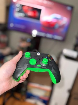 [This review was collected as part of a promotion.] Great controller feels good in the hand and is very similar in feel to the OEM controller. Lightweight and comfortable to hold for long hours. Strong rumble and I like that it’s connected with a wire so I never run out of battery. The wire is also pretty long so you don’t have to sit close to the console to use it. Also has a cool camo and neon green colorway, very eye catching. Wild definitely recommend it.