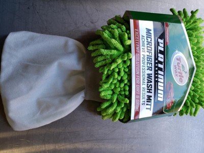 The Turtle Wax Platinum Series Microfiber Car Wash Mitt has a chenille microfiber front designed for use on various surfaces. The microfiber loops hold more soap and water for easy washing. The back glove grip design conveniently allows for easy holding to make cleaning your car, truck, SUV, RV and boat a breeze.