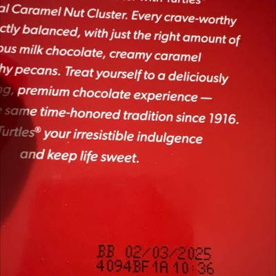 I always give my mom a box of Turtles with her Christmas gifts. I ordered to have it shipped to me from Target. She opened the box to eat one and they were all gray. She then checked the date at the bottom of the box and it was March 1st 2025.