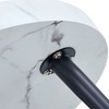This modern coffee table features an exquisite white marble pattern on its tabletop, adding a natural touch of elegance to any room. Made from durable 2-inch thick MDF, it ensures lasting stability and longevity. The tabletop is treated with a suction molding process for enhanced water resistance and durability.