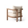 - Boho-Inspired Acacia Wood with Curved Hollow Back – Crafted with a solid acacia wood frame and featuring a stylish curved hollow back, this patio accent chair adds natural texture and relaxed bohemian charm to any outdoor space.