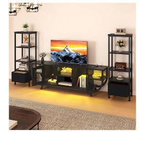 TV Stand for TVs up to 65 inch, LED Entertainment Center with 2 Bookshelf & Power Outlet,Farmhouse TV Console Cabinet with Fabric Drawer - 2 of 4TV Stand for TVs up to 65 inch, LED Entertainment Center with 2 Bookshelf & Power Outlet,Farmhouse TV Console Cabinet with Fabric Drawer - 3 of 4TV Stand for TVs up to 65 inch, LED Entertainment Center with 2 Bookshelf & Power Outlet,Farmhouse TV Console Cabinet with Fabric Drawer - 4 of 4