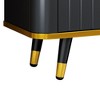 • Sleek Modern Design: This TV cabinet features a minimalist line aesthetic enhanced by elegant gold accents, offering a stylish and contemporary look that adds a touch of luxurious charm to any space.