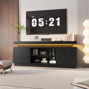 {Ample Storage Space}This TV stand offers two spacious cabinets and an adjustable glass shelf with three height options, perfect for storing remotes, DVDs, gaming consoles, books, and more.