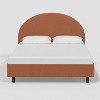 - Upholstered half-moon platform bed, designed for use without a box spring
