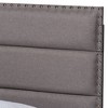 Anchor your bedroom in style and comfort with the Ansa bed. Built with a sturdy wood frame, the Ansa is upholstered in a soft, foam filled polyester fabric that provides ample comfort for you to rest against. Channel tufting adds a clean, modern look, while silver nailheads lend a touch of glamour. Black tapered legs complete the look. A box spring is required for use. The Ansa bed is made in Malaysia and requires assembly.