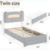 Twin Bed Frame with LED Lights & 2-Tier Headboard, Upholstered Platform Bed with Charging Station and Storage Drawer