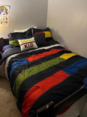 [This review was collected as part of a promotion.] My ten year old likes this comforter set a lot. He really likes the colors and style and design. This comforter fits his bed perfectly. It also comes with two throw pillows and pillow cases.