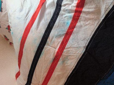 Received it in the mail and washed it. Colors bled all over the white part of the comforter. See pictures.