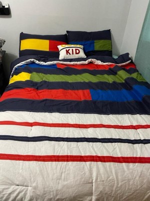 [This review was collected as part of a promotion.] The Urban Habitat Kids - Morris Stripe Printed Comforter Set is so beautifully colored. These bright colors make your child's room stand out. This set comes with the comforter, two pillowcases and two pillows. The striped pattern on the comforter can be put horizontally or vertically depending on your mood. This comforter is thick and well made. My son absolutely loves it.