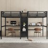 Twin Over Twin Metal Loft Bed with Double Desk and Wardrobe and Shelves with Electrical Outlet for Space Saving and Noise Reduction,Black