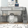 Twin Size Loft Bed Frame with Built-in Desk and Double Storage Drawers