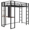Twin Size Metal Loft Bed with Two Shelves and Desk
