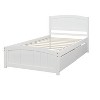 This Wood Platform Bed with Two Drawers is a minimalistic, stylish bed frame that works well with a variety of decorating styles and makes it easy for you to enhance and improve your space. Featuring strong, solid pine wood and ten supporting slats, this bed is built to last, ensuring it will accompany you for many years. The beautiful finish lends an elegant look and makes this bed frame an excellent addition to any bedroom, do not miss the chance to take it home today.