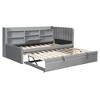Twin Size Upholstered Daybed with Trundle and Storage Shelves for Bedroom or Apartment