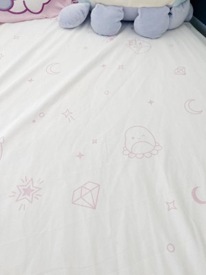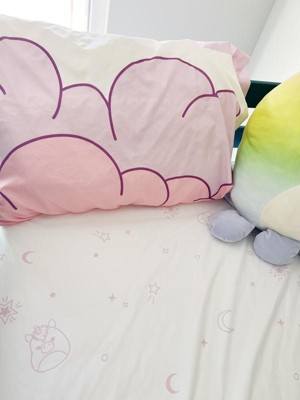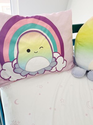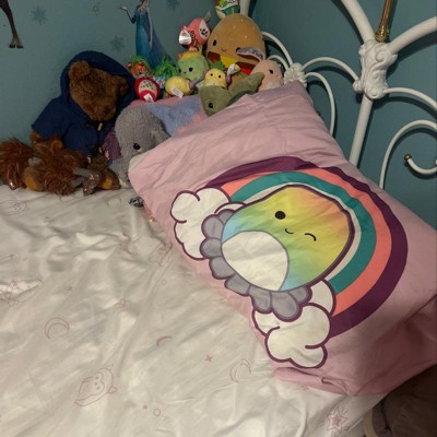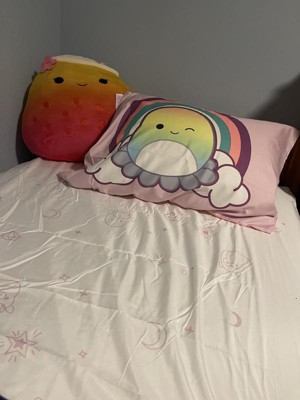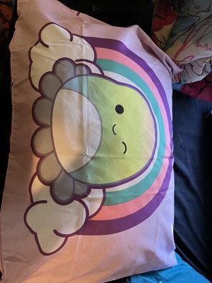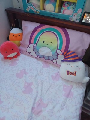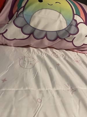 I’m in love with the design on these sheets and the pillow case! Pillowcase has two different designs on each sign. Really soft to the touch and seems like they would keep cool at night. Love this set! (Squishmallow not included) we just happened to have the matching one!
