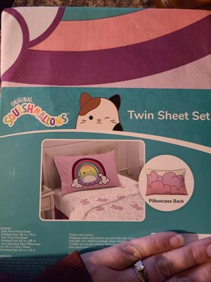 my daughter loves Squishmallows and this Twin Squishmallows Sheet Set is perfect for her collection, it is very soft, it is very fresh for the Arizona heat, excellent quality, it is very easy to wash, this set comes with 3 pieces, its design is very cute , my daughter recommends it to all children who love Squishmallows!