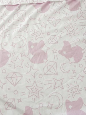 This sheet set will surely brighten up any bedroom while bringing fun to ones bed too! The colors are bright and vivid, the sheets are soft and cozy. The sheet set washes up nicely, and holds up well with no shrinking. Packing was very well done, no creases, or lines were in the sheet set. The set lays flat, and holds tightly to the bed. The sheet and top sheet have different designs on them, as well as the pillowcase. For any squish mallow fan, this sheet set is sure to be loved!
