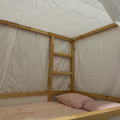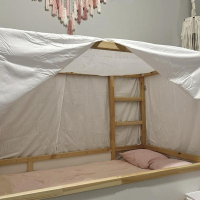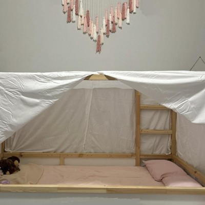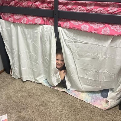 [This review was collected as part of a promotion.] This is a really cool item. It would go better on a twin platform bed but I decided to use it on my twin size bunk bed. This is meant for a twin or twin XL and I found it to be true to size. The length is perfect on the bunk bed as you can see it goes right to the floor. I wish this came in colors other than white as it will easily get stained. I like that this will make a tent for my little ones I received an incentive to write this review.