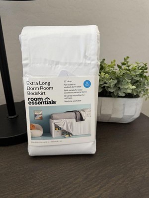 Twin/Twin XL CiCLO rPET Dorm Room Bed Skirts White - Room Essentials™ is the perfect addition to any dorm room. This bed skirt has a great length, and is perfect as a skirt or as a sheet to dress your bed.