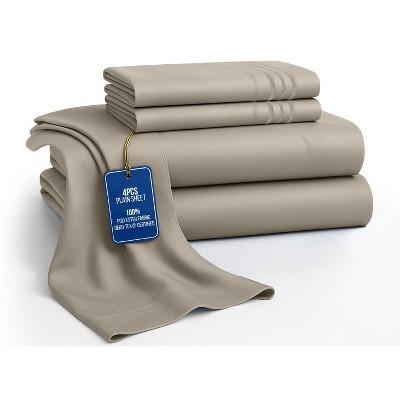 Twin XL Sheet Set 3 Piece Soft Microfiber Solid Bed Sheets - Taupe