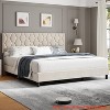 - Sleek Minimalist Design: This queen-size bed frame features a upholstered headboard that complements various decor styles. The EVA mute bar eliminates noise from friction, ensuring a peaceful night's sleep without any squeaking or creaking.