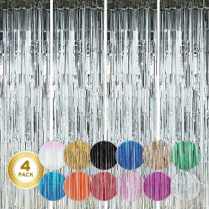 Twinkle Star Metallic Tinsel Fringe Curtains - 3 ft x 8 ft Backdrop, Photo Booth, Party, Wedding Decor - Silver, 4-Pack