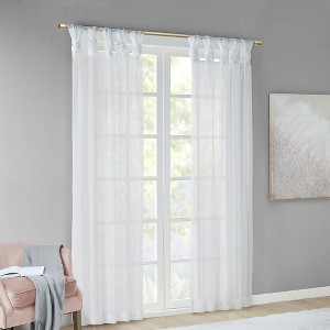 Soften your space with the Madison Park Ceres Twisted Tab Voile Sheer Window Pair. This soft panel pair provides a simple and airy update to your decor, with its lightweight voile sheer base and delicate color palette for the perfect ethereal touch. The DIY twist tab top creates beautiful and delicate folds for a stylish decorator's touch. This window panel is also OEKO-TEX certified, meaning it does not contain any harmful substances or chemicals, ensuring quality comfort and wellness. Machine washable and easy to hang, open, and close throughout the day and fits up to a 1.25in diameter rod. This window panel pair is perfect on its own for a soft filter or layer with others for a dramatic effect.