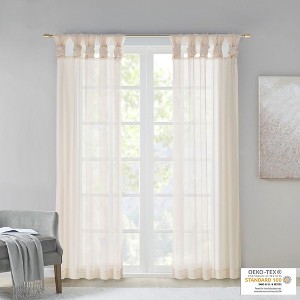 Soften your space with the Madison Park Ceres Twisted Tab Voile Sheer Window Pair. This soft panel pair provides a simple and airy update to your decor, with its lightweight voile sheer base and delicate color palette for the perfect ethereal touch. The DIY twist tab top creates beautiful and delicate folds for a stylish decorator's touch. This window panel is also OEKO-TEX certified, meaning it does not contain any harmful substances or chemicals, ensuring quality comfort and wellness. Machine washable and easy to hang, open, and close throughout the day and fits up to a 1.25in diameter rod. This window panel pair is perfect on its own for a soft filter or layer with others for a dramatic effect.