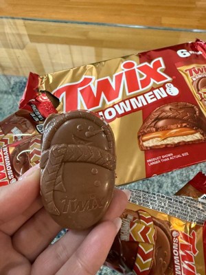 [This review was collected as part of a promotion.] The Twix Snowmen are a festive version of the classic Twix bar that capture the same mix of creamy caramel, crunchy cookie, and smooth milk chocolate in a fun winter shape. Each snowman is individually wrapped, which makes them great for stockings, candy bowls, or small holiday treats. The flavor is familiar and comforting. The chocolate coating is thicker than a standard Twix, giving a richer taste, while the caramel remains soft and buttery. The cookie layer feels slightly smaller, so the signature crunch is less noticeable, but the overall texture is still satisfying. Twix Snowmen are a fun seasonal treat that combine nostalgia with a touch of holiday charm. They taste just as good as the original, with a little extra chocolate to make them feel indulgent.