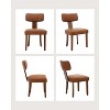 Two dining chairs in a set, modern leather upholstered, wood frame, 265 lb load capacity, easy to clean, curved backrest.