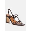 The sleek design showcases a slim block heel and slingback strap, offering both elegance and comfort. Whether you're dressing up for a special occasion or adding flair to your daily look, these sandals effortlessly elevate your outfit. The slingback strap ensures a secure fit, while the slim block heel provides a touch of sophistication. Type: Sandals Upper: Faux Leather Light Cushion Insoles Outer: TPR Open Square Toe Slim Block Heel Cross Strap Detail SH2692