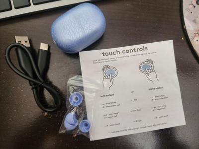 These wireless earbuds are comfortable and the sound quality is great. It was easy to pair, they show up in the Bluetooth as HEYDAY EARBUD 10. The first earbud you remove from the case will be the primary earbud. It comes with different earbud tips and the USB-C charging cable. I like how easy the touch controls are and how clear the directions are. They don’t fall out of my ears and i love the lavender color and print to them.
