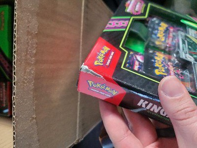 Shipping department crammed the packages causing damage to the box. This is the not the first time I purchased Pokemon cards from Target online. Once again, the items were damaged by the shipping department. Target once again refused to help me to correct THEIR carelessness.