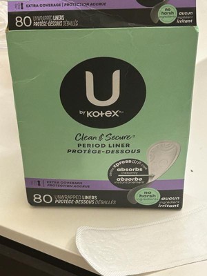 Enjoy feeling clean and dry with the U by Kotex Clean & Secure Panty Liners, designed for your light days! These panty liners showcase U by Kotex's Xpress-Dri core that absorbs instantly. Hypoallergenic and dermatologist-tested to be gentle on skin, the unscented liners are made without harsh ingredients and do not have any fragrances, lotions, pesticides, elemental chlorine or natural rubber latex. Plus, Clean & Secure panty liners are also designed with a breathable soft touch cover to help keep you comfortable. These U by Kotex panty liners come individually wrapped, so you can take them wherever you go. For reliable period protection on heavier days, try U by Kotex Clean & Secure Ultra Thin Pads. U by Kotex feminine products are FSA/HSA/HRA-eligible in the US. Packaging may vary from images shown.