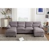 U-Shaped Modular Sectional Sofa with Chaise Lounge, Terrycloth Upholstered 4-Seater Couch with 4 Waist Pillows for Living Room