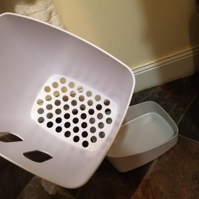 [This review was collected as part of a promotion.] I never thought this thing would become a must have item for us in our bathroom until we tried one. It keeps the toys neat and dry avoiding the nasty stuff that accumulates in wet toys/objects. It’s just a good way to keep small toys in one place. The size of this bin is big enough to hold all my kids toys they use in the tub. Highly recommend you get one of this.