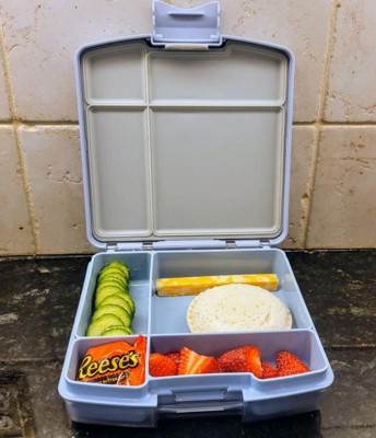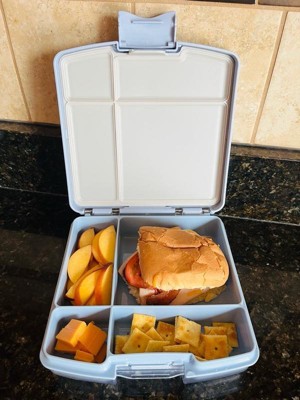 [This review was collected as part of a promotion.] This is ideal for if your kiddo likes to have their snack separated during their lunch or if you're tired of finding squish sandwiches in their lunch bag. It's durable but not overly large, so it will fit in a normal sized lunch bag and the compartments are really handy. As you can separate, the snacks, don't have to worry about bread. Getting smushed or the fruit getting smushed and it's a win win for everyone. The lid seals on nice and tight, so you don't have to worry about liquid spilling out either.And the color was suitable for my son, and my daughter.