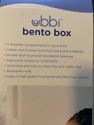 [This review was collected as part of a promotion.] The Ubbi Bento Box is a perfect find for back to school! The four compartments are generously sized and perfect for lunch or snacks. The tray seals each compartment separately with a rubber seal so even messy food stays put and also won't leak into their backpack. The latch is secure enough to hold everything in but is easy enough for little hands to open it on their own. The tray and lid inside the box are removable for easy cleanup.